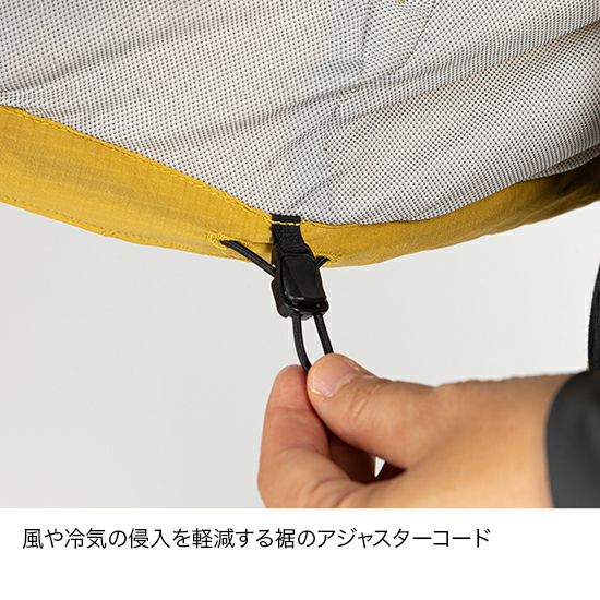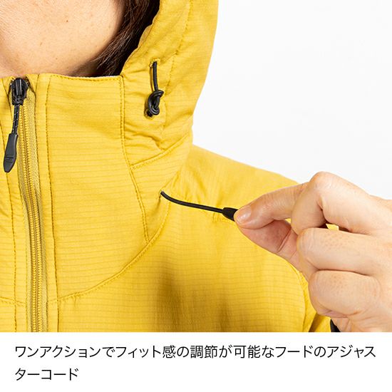 ■フードにはワンアクションでフィット感の調節が可能なアジャスターコード付