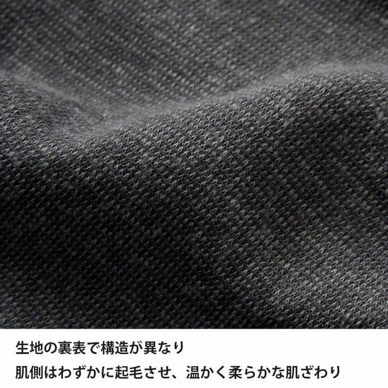 表面側は立体構造、肌面側は微起毛をかけることで、吸汗性と軽量性を損なわずに最大限の保温力を発揮できるように設計。厚手ベースレイヤーの弱点である「乾きにくさ」「重さ」を克服しました。
