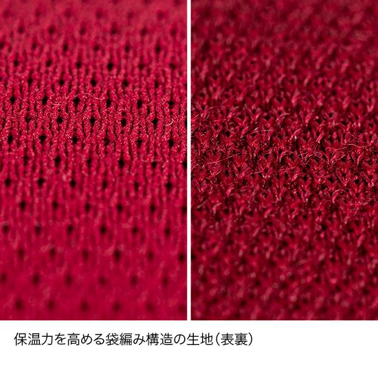 メリノスピン®サーモは、2層の袋編み構造の生地を採用し、生地の層間に温かな空気層を保つことで、厳冬期を含めた冬期のアクティビティに適した保温性を備えます。冬期登山やアイスクライミング、BCスキーやスノーボードなど、様々なアクティビティに活躍します。