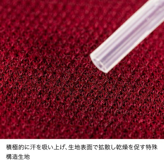 メリノウール本来の保温・調湿性と高機能ポリエステルの吸汗速乾加工を兼ね備えているため、蒸れにくく汗を素早く乾かします。