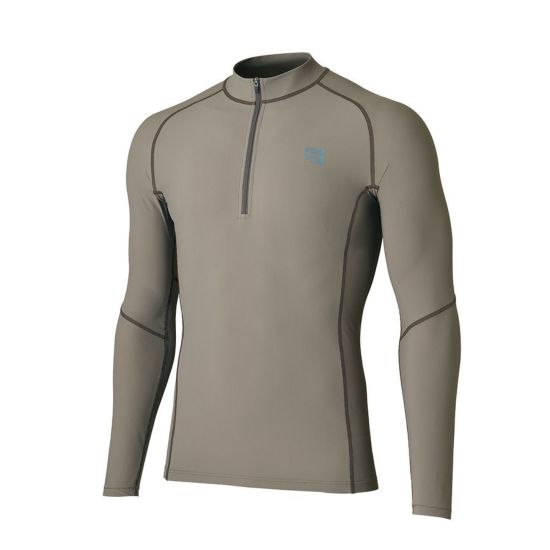 フロントジップで着脱や温度調節ががしやすく、日差しや擦れから首回りを保護するジップネックタイプです。