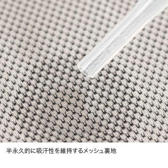 表地に軽量なストレッチ布帛生地を採用。体の動きにフィットする立体パターンによって、動きやすさと着心地の軽さを両立しています。