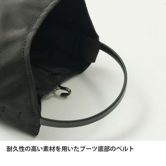 ゲイター外側は留め具など引っ掛かりの原因となる突起物を極力排除したデザインで、破損や転倒のリスクを軽減。