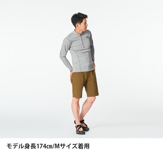 タテヨコに伸びて岩場や沢中などでの大きなアクションでもストレスフリーの動きやすさを備えます。