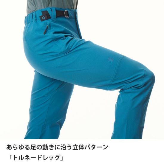 薄手なのに、摩耗への優れた耐久性のある高密度ナイロン生地を、曲線のラインで脚を包みこむ革新的なオリジナルパターン「トルネードレッグ」で縫い上げたタフで動きやすいテクニカルパンツです。