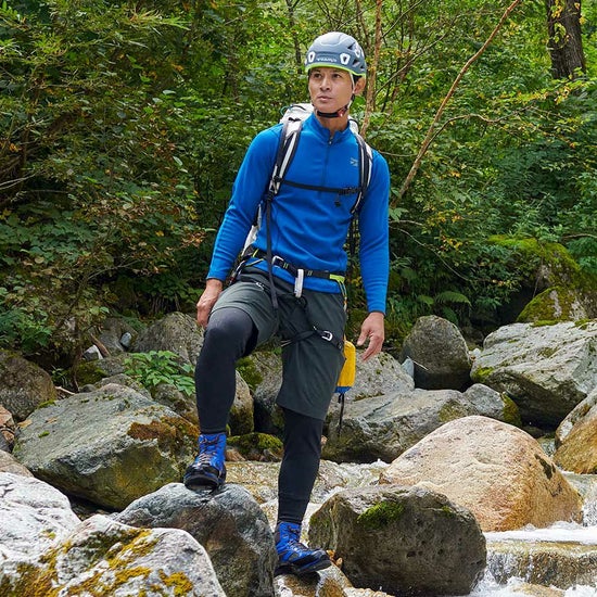 高密度な耐久撥水ニットのテクノロジーにより、ずぶ濡れになるシーンでも水の浸入を可能な限り低減。水中で冷えにくく、陸に上がれば水切れの良さと蒸れにくさを備え軽くて動きやすい。そのため、沢登りやカヤックなど頻繁に水中と陸上を行き来するウォーターアクティビティで抜群の快適性を誇ります。