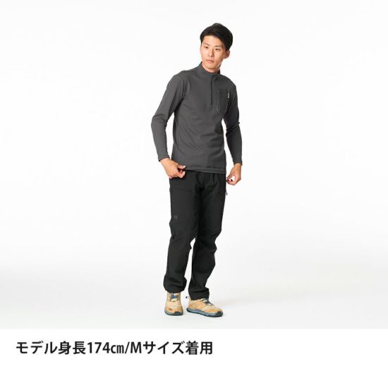 表面側は立体構造、肌面側は微起毛をかけることで、吸汗性と軽量性を損なわずに最大限の保温力を発揮できるように設計。厚手ベースレイヤーの弱点である「乾きにくさ」「重さ」を克服しました。