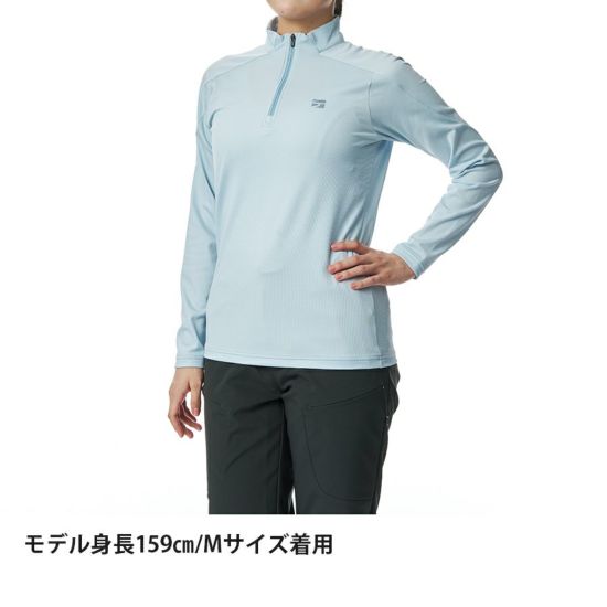 フロントジップで温度調節しやすく、日差しや擦れから首回りを保護するのに最適なジップネックです。