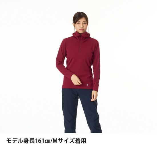 メリノウール本来の保温・調湿性と高機能ポリエステルの吸汗速乾加工を兼ね備えているため、蒸れにくく汗を素早く乾かします。