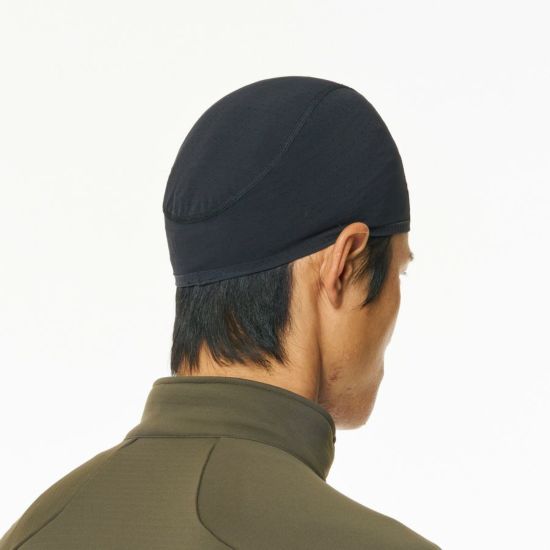 各種ビーニーとのレイヤリングによって、頭部の汗冷えを軽減するドライレイヤー®のインナーキャップが2022年秋冬にリニューアル。パターンの再設計でフィット感が向上し、汗止め機構の追加で額から流れる汗を軽減する仕様に変わりました。優れた耐久撥水性はそのままに、頭部の汗を素早く肌から遠ざけ、汗冷えやベタつきを軽減します。