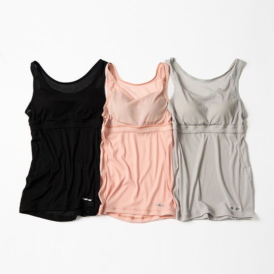 バストの汗冷えやベタつきを軽減する、アウトドア女子のためのブラタンクトップです。