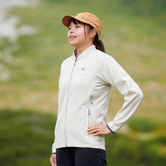 吸汗蒸散性を高いレベルで実現したドラウト®構造生地により、行動中の汗濡れや蒸れを抑えながら、適度な保温性を発揮します。