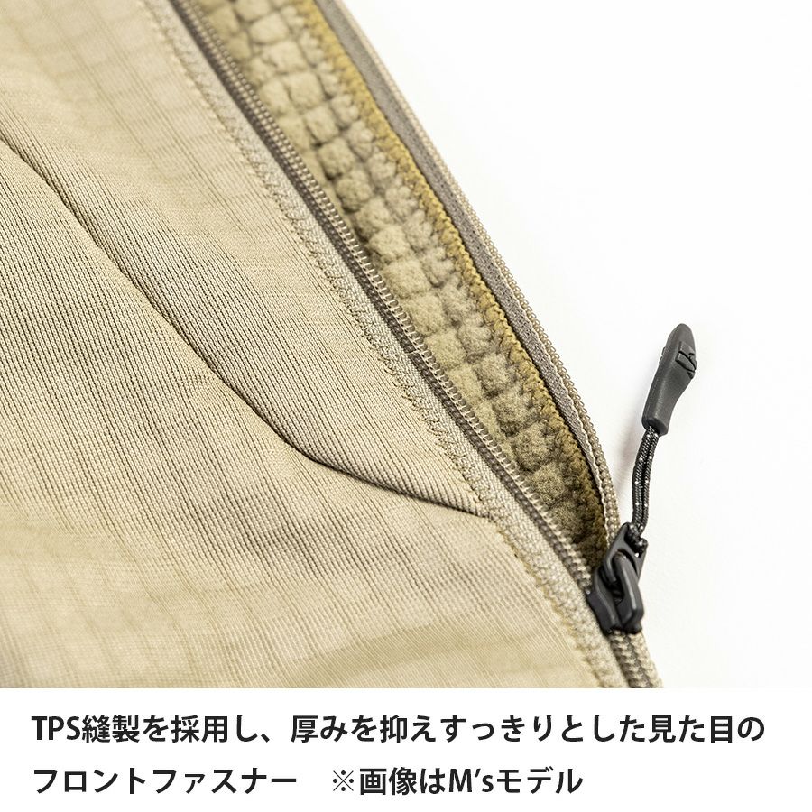 冬山でも発汗が続くアクティビティを好む方におすすめの一枚です。フロントファスナー周りを、「TPS縫製」を採用することで凹凸感のない縫いあがりにする等、生地の必要以上の重なりを抑える仕様を採用、細部まで使いやすさにこだわりました。