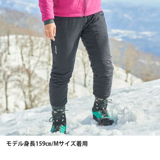 冬期登山に十分な保温性を備えながら、細身のシルエット。アウターシェルパンツの中に穿いてもごわつきにくく、軽さやストレッチ性と相まって動きを妨げません。