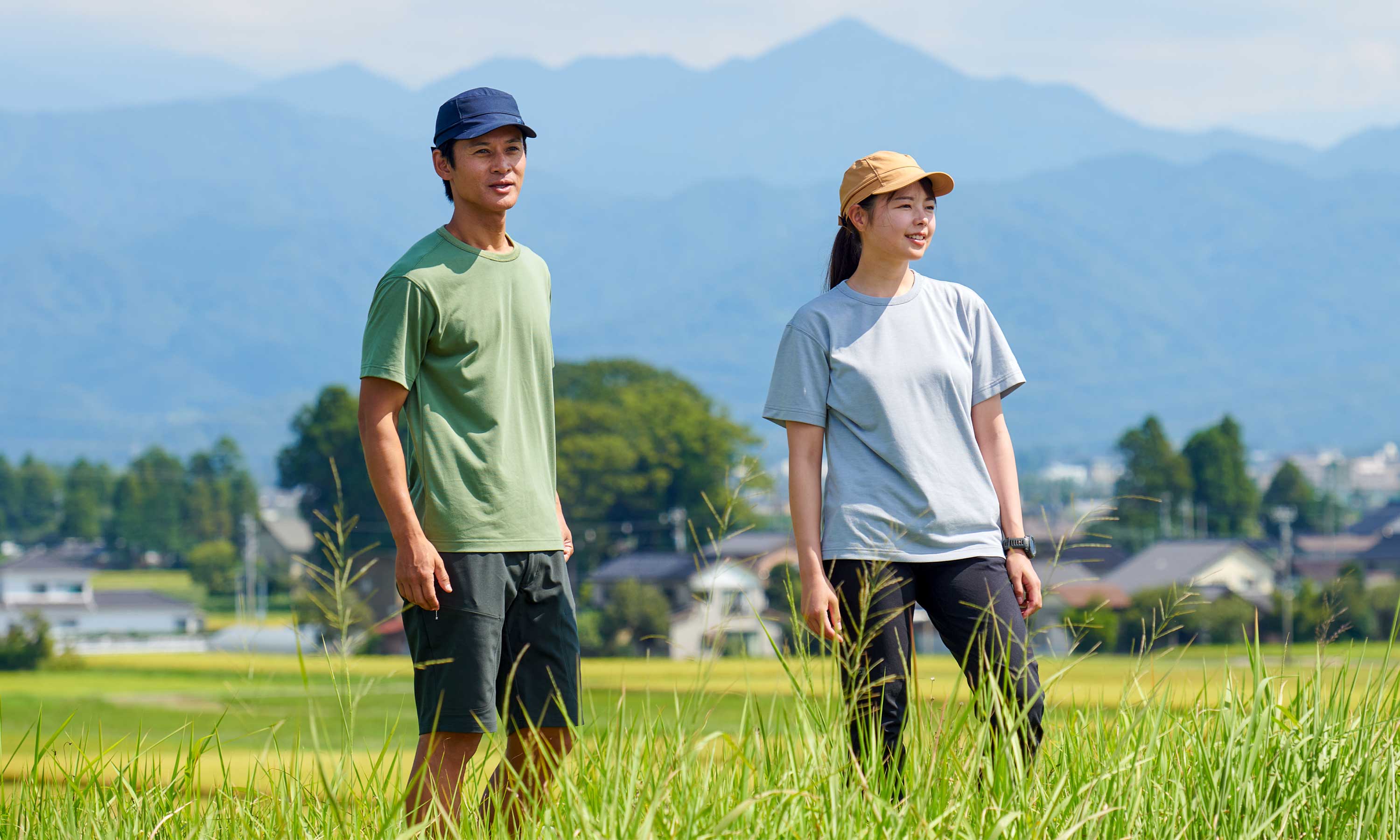 濡らしても速く乾く、繰り返しの着用でも型くずれしにくい、などアウトドアウエアとしての機能性も充分に備えています。