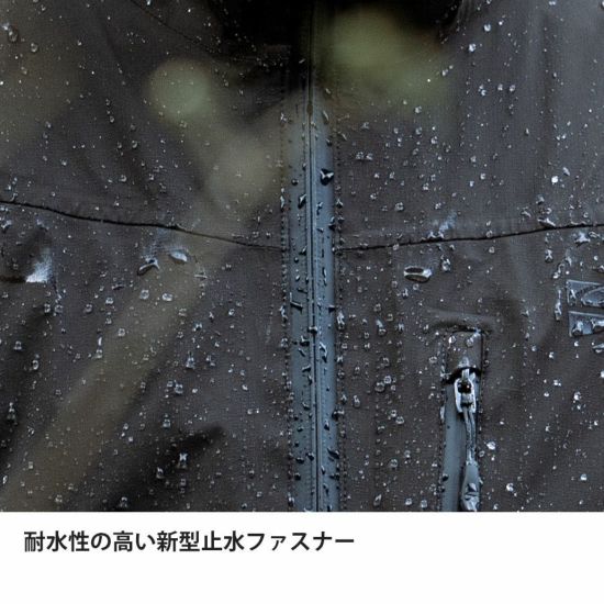 YKK(株)との協働により生まれた、革新的な新型止水ファスナー「AquaGuard ®Tightened※」を採用(フロントとベンチレーター)。