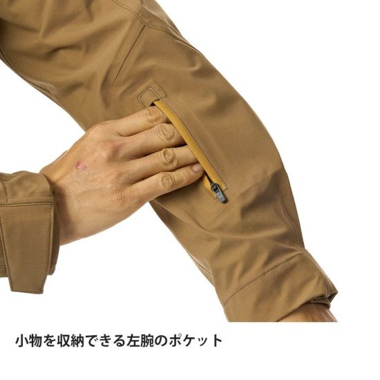 ■計5つの多様なポケット(両胸のマチ付き大型ポケット、左右のハンドポケット、左袖口の小物ポケット)