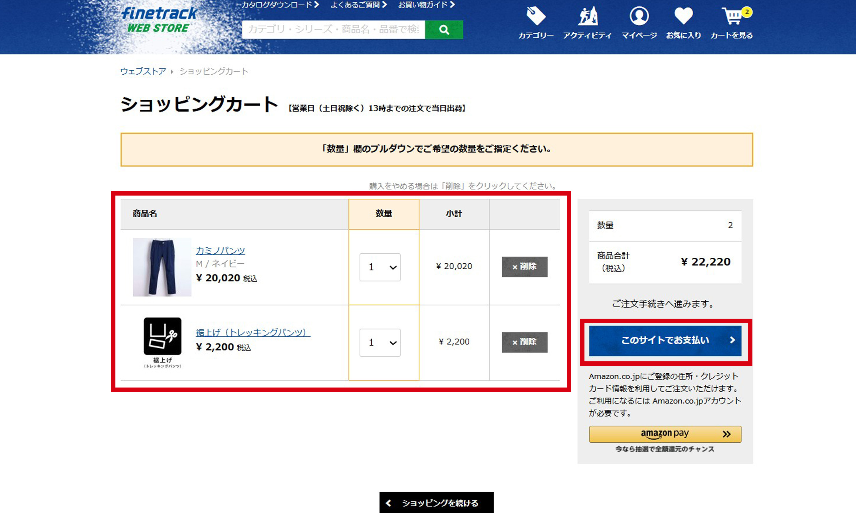1.対象商品・条件をご確認のうえ、本ページの商品のみをカートへ入れて、このサイトでお支払いをクリックしてください。