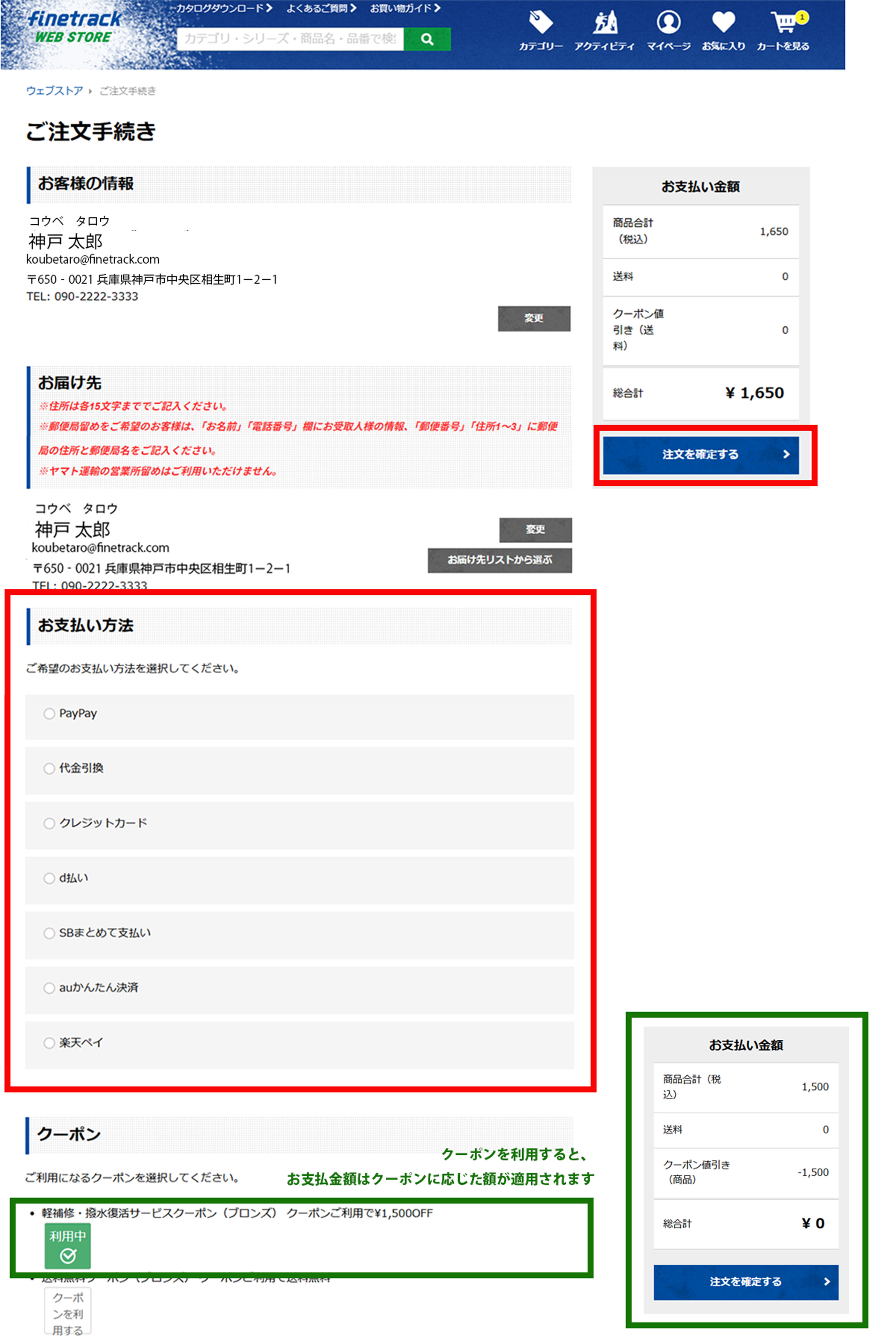 2.ご注文手続き画面で、お申込み内容を確認を確認のうえ、注文確定をクリックしてください。