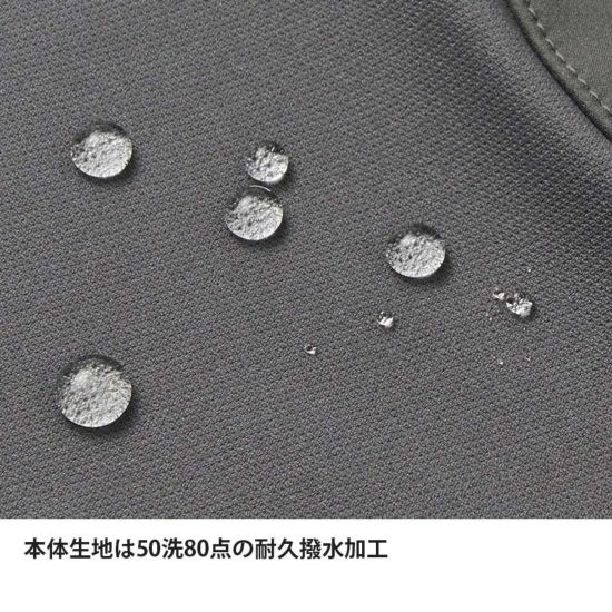 | 素材 | 本体:ポリエステル55%、複合繊維(ポリエステル)45% あて布部:表:50デニール4WAYストレッチナイロンタフタ、裏:20デニールポリエステルニット、中間層:エバーブレス®メンブレン |