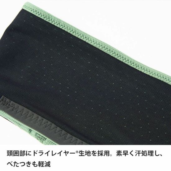■頭囲部には肌をドライに保つためのドライレイヤー®クールと汗を吸い上げるドラウト®タフの生地の2枚を重ね使い