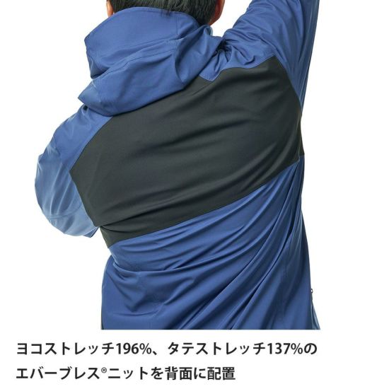 タテヨコに伸びる異次元ストレッチ性を備えた防水透湿素材「エバーブレス®」を使用。