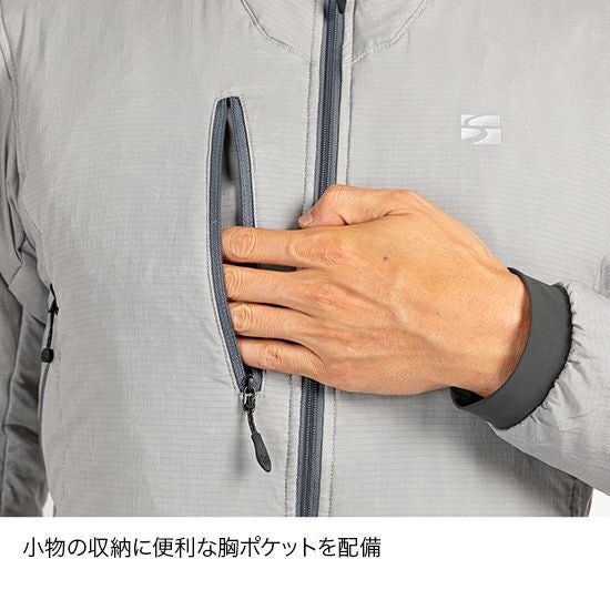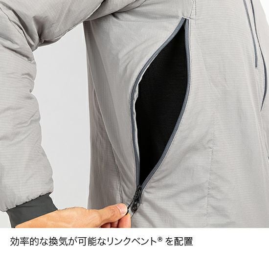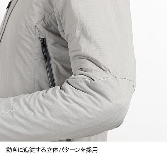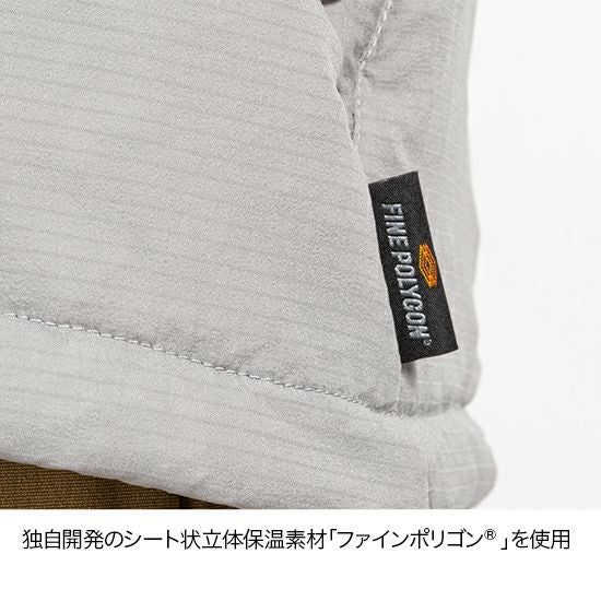 シート状立体保温素材ファインポリゴン®を3枚封入し、優れた汗処理性能と厳冬期に対応可能な保温性を両立した行動保温着です。
