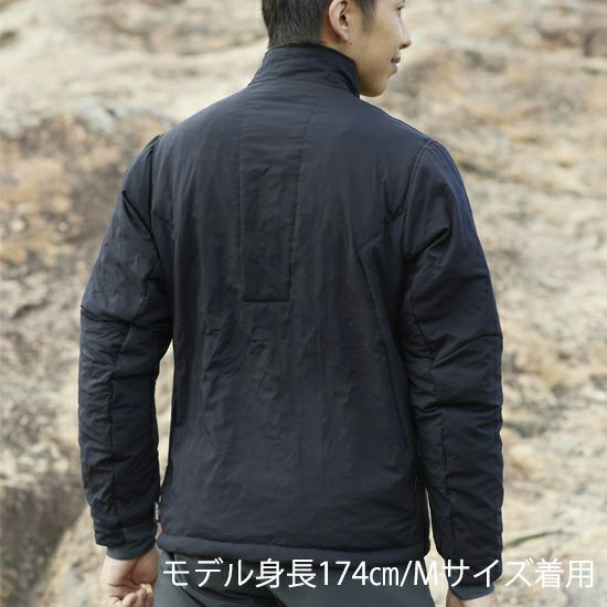 表地に軽量なストレッチ布帛生地を採用。体の動きにフィットする立体パターンによって、動きやすさと着心地の軽さを両立しています。