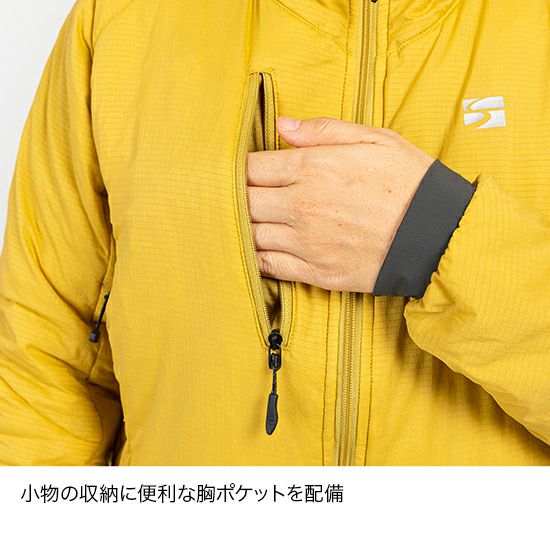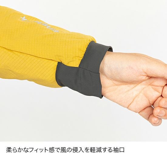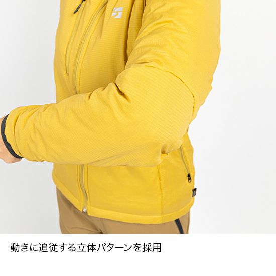 表地に軽量なストレッチ布帛生地を採用。体の動きにフィットする立体パターンによって、動きやすさと着心地の軽さを両立しています。