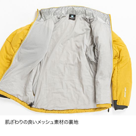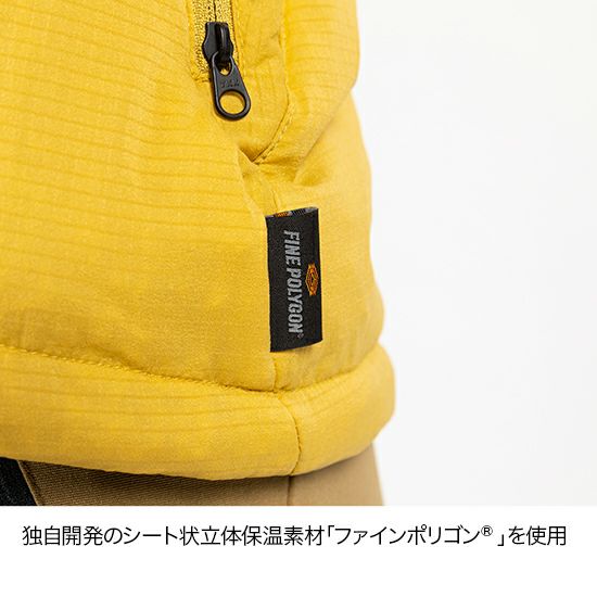 シート状立体保温素材ファインポリゴン®を3枚封入し、優れた汗処理性能と厳冬期に対応可能な保温性を両立した行動保温着です。