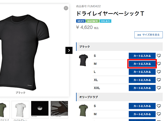 ご希望のカラーとサイズを見つけたら、「カートに入れる」をクリックしてください。