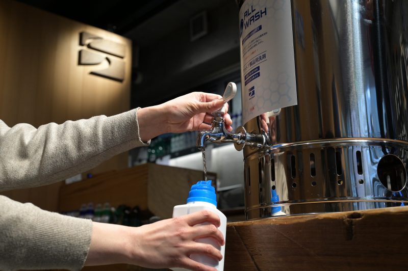 店頭では、オールウォッシュを蛇口から注ぐ量り売りとして販売します。