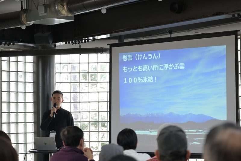 株式会社ヤマテンの気象予報士・窪田様より、「空と天気とわたし」をテーマにご講演いただきました。山と天気の関係や、現場でのリアルなお話に、皆さま熱心に耳を傾けていらっしゃいました。