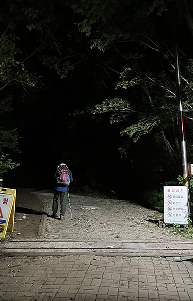 その後もバスとタクシーを乗り継ぎ、午前0時すぎ、ようやく登山口のある姓三峠(ソンサムジェ)に到着。