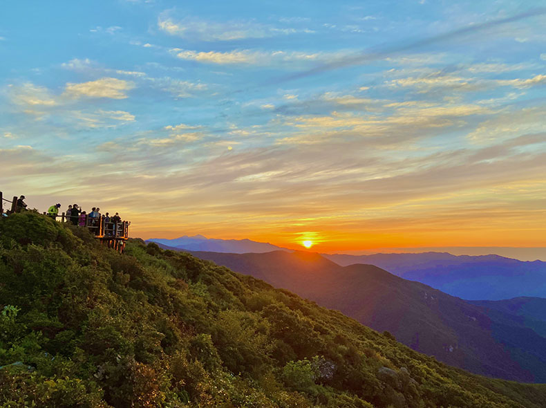 登山口からここまでは道が非常に整備されており、軽装備でも十分来ることができる。ここで朝日を眺めるためだけに智異山にやってくる人が大半のようで、日が昇るころには山頂はたくさんの人であふれていた。