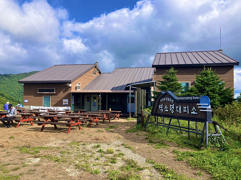 3時間ほど歩いたところで、数ある智異山系の山小屋の中でも一番大きい細石(セソク)待避所に到着。