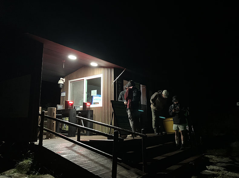 午前3時半、周りのハイカーに混ざって出発。満点の星空のもとヘッテンの明かりを頼りに歩く。