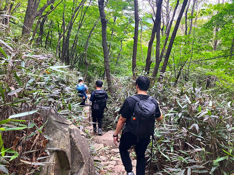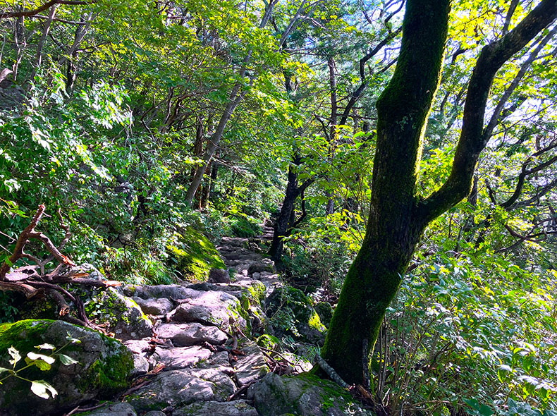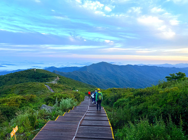 ノゴダンのピークを後にし、ゲート前に戻ってくる頃にはすっかり明るくなっていた。ほとんどの人が元来た道を戻り登山口へ帰っていく中、人々に背を向けひとり智異山縦走路へと進む。ここからは本格的な登山道がはじまる。