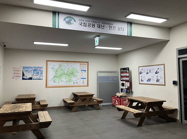 智異山にはこんなかんじの立派な「待避所」とよばれる山小屋が複数ある。