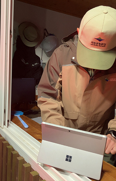 韓国では英語は通じないことが多く、基本的には韓国語でのコミュニケーションが必要。こんなときスマホのGoogle翻訳に韓国語をダウンロードしておけば、電波のない山間部でも使えて安心だ。事情を説明すると快く入山を許可してくれ、その後のルートについても親切に案内してくれた。