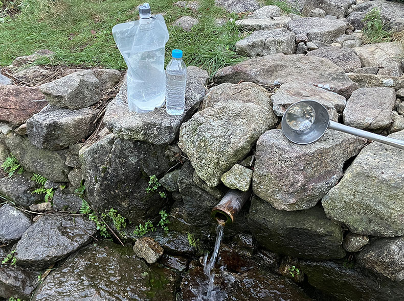 途中で湧き水を回収。