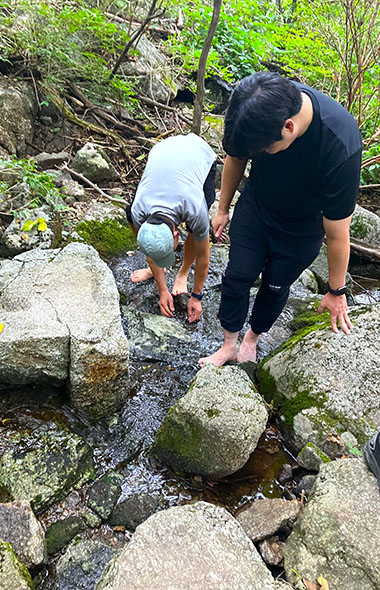 清流で足を冷やす男たち。韓国ではこれは当たり前なのか?