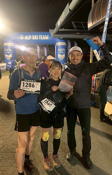 長野県飯山で開催のトレイルランの大会「奥信濃100」に同僚と揃って参加。若手、ベテランそれぞれの目標を目指して取り組んだ。