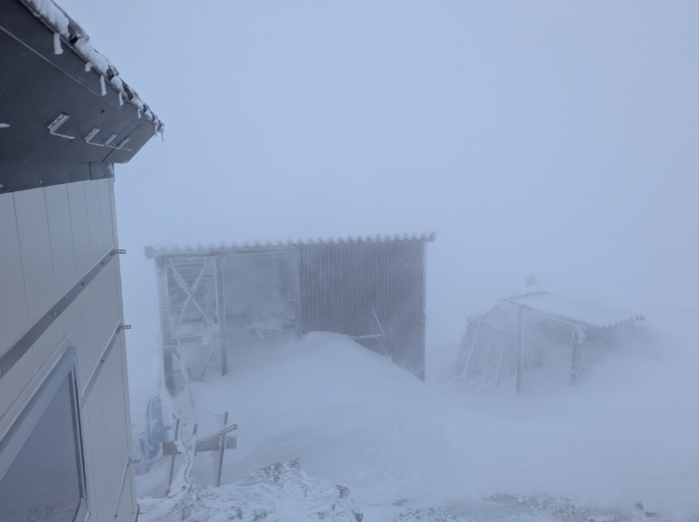 非常に微妙な天気だが、予報通り気温は高く、風に打たれてもそこまで寒さは感じない。降雪さえ落ち着けばどうにかなるだろうか。
