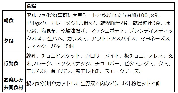 α化米には大豆ミートと乾燥野菜を入れている。この日はお湯を入れる前にバターと煮干しとスモークチーズも入れた。序盤に重量で苦しめられたことと引き換えに、最後まで食は満たされていた。