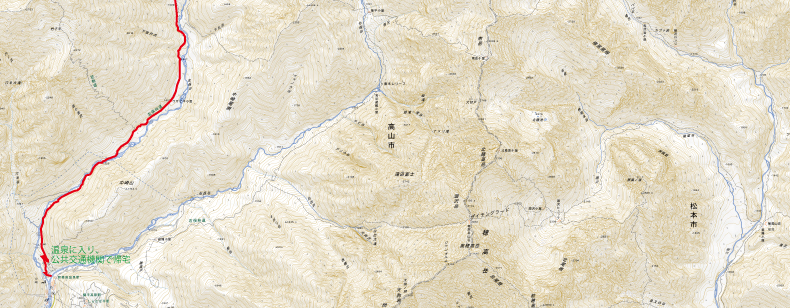 左俣林道にはうっすらと踏み跡が残っていた。13時頃新穂高に到着し、バス停で外国人観光客に次のバスの時間を聞かれて、下山したなあと感じた。
