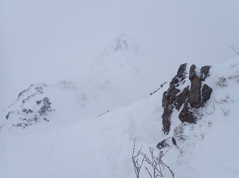 一瞬ガスが切れ、双六岳が見えた。