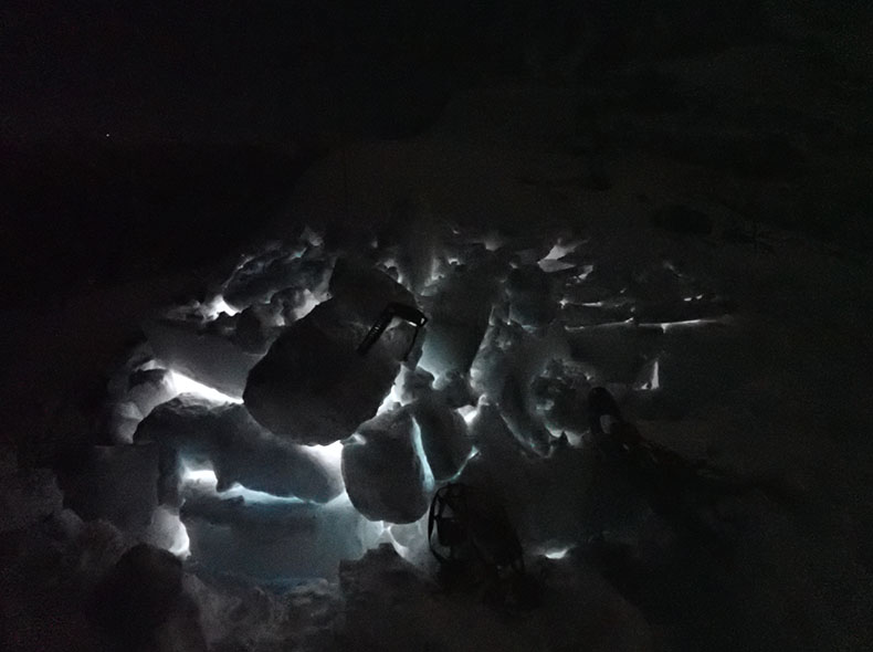 夜に外からイグルーを撮った写真