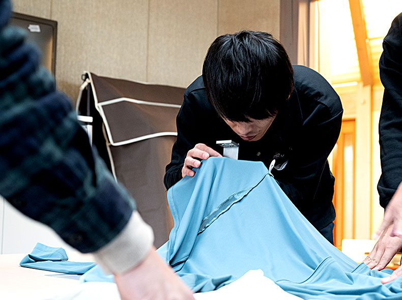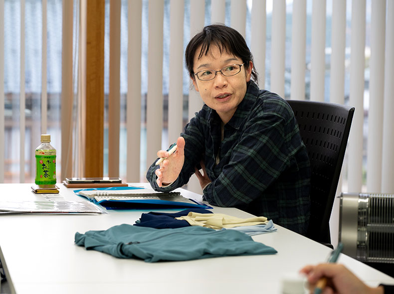 優れた糸のみで製品は完成しません。特性を最大限に引き出す「編み」の技術が必要です。その役割を担ったのが、ニットメーカーのミツカワ(株)でした。「他社でできることはやらない。そうやって何度も挑戦を繰り返し、進化し続けてきました」と、企画営業課の飯田氏は同社の姿勢を語ります。