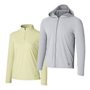 酸化チタンを高濃度に練り込んだ生地が、日傘のように太陽光を遮り、体に届く熱を軽減。日本の過酷な夏のアクティビティをサポートします。